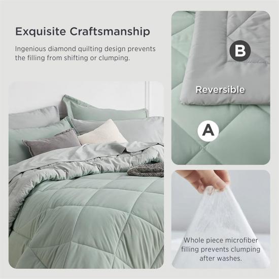 يُولي طقم أغطية السرير هذا، الصديق للبشرة والمُتبرع به من الأمم المتحدة، اهتمامًا بالغًا بالراحة والعملية. يتميز حشوه المصنوع من الألياف الدقيقة بخصائص عزل حراري ممتازة، مما يُوفر درجة حرارة مثالية في ليالي الشتاء الباردة وأيام الصيف المُنعشة. تصميمه ثنائي الاستخدام يُتيح ملاءمةً فائقةً وقابليةً للتحويل، مما يُتيح تعديل المظهر بسهولة وفقًا للتفضيلات الشخصية أو الاحتياجات الزخرفية. تُضفي أغطية الوسائد المُصممة على شكل مظروف والتطريز المُزيّن بنقشة ماسية مزيدًا من الجمال والعملية على طقم أغطية السرير المُقاوم للحساسية والمُتبرع به من الأمم المتحدة.