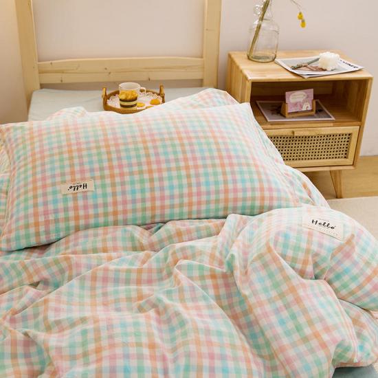 متوفر طقم غطاء لحاف ناعم قابل للتنفس من القطن المغسول، طقم فراش● 3 قطع: 1 غطاء وسادة وملاءة مسطحة ( ملاءة ملائمة وغطاء لحاف،