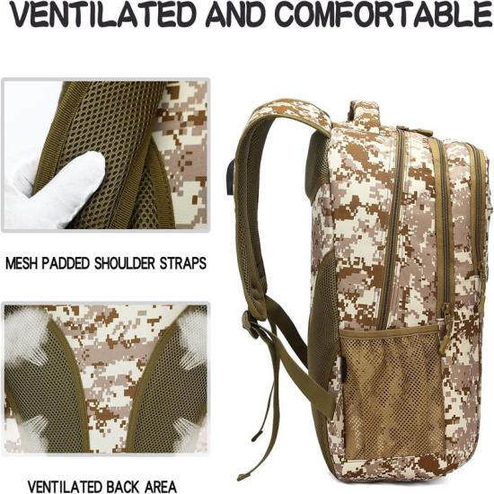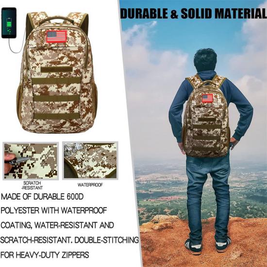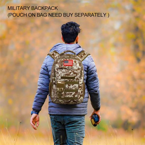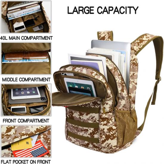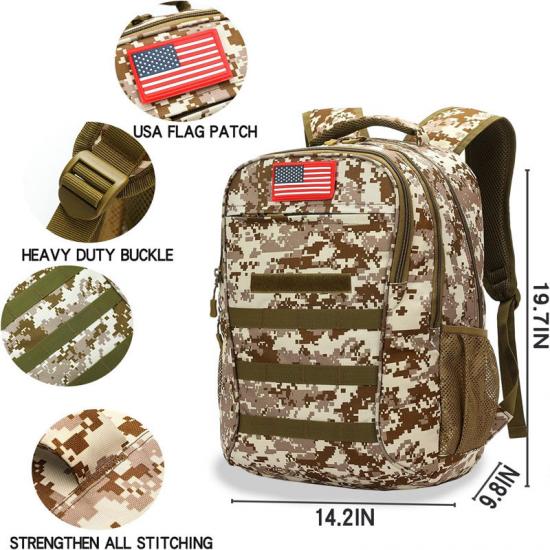 حقيبة الظهر العسكرية متينة وخفيفة الوزن ومتينة ومقاومة للماء، مع ميزات مقاومة للتمزق، مما يجعلها مثالية لأي مغامرة. حقيبة الظهر مصنوعة من مواد عالية الجودة يمكنها تحمل البيئات القاسية والاستخدام الكثيف.