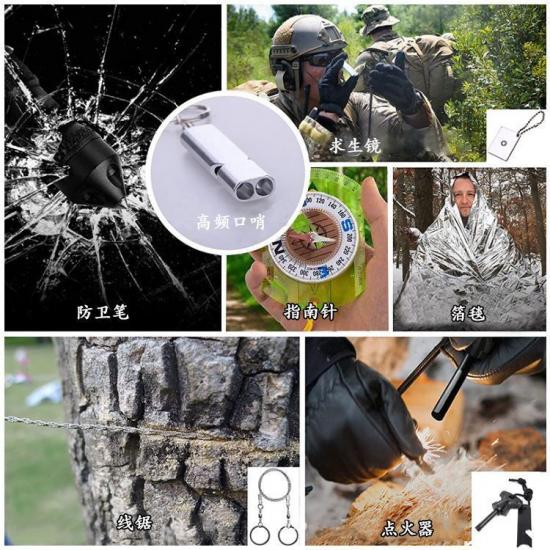 مجموعة أدوات النجاة في حالات الطوارئ 18 في 1 من الوكالات الحكومية بالجملة مجموعة الإسعافات الأولية مجموعة الهروب من الحريقالتالي :